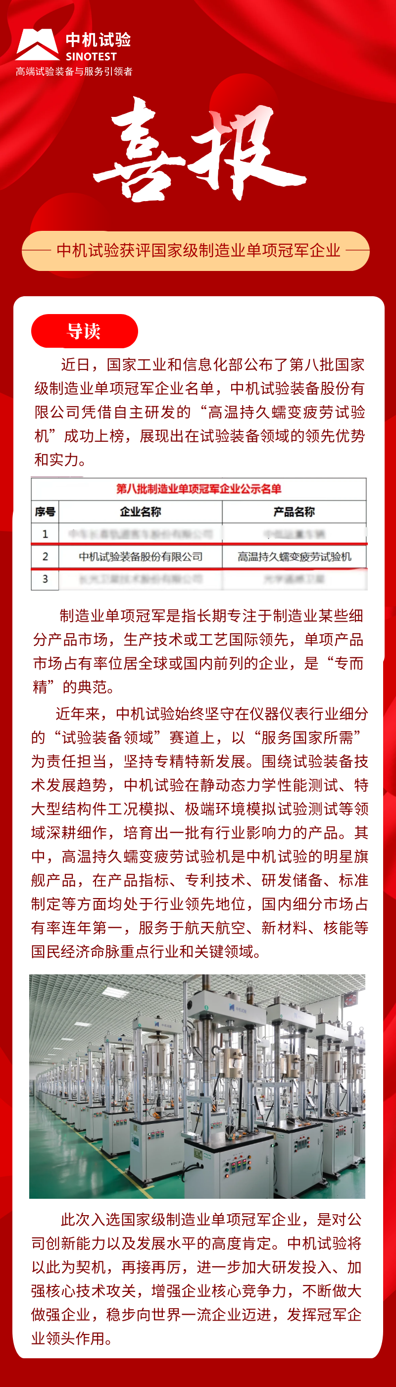 中機試驗獲評國家級制造業單項冠軍企業