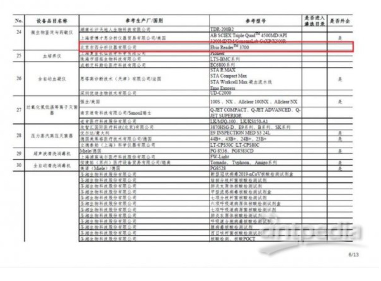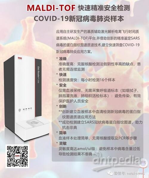 2020年2月25日,北京東西分析儀器有限公司自主研發(fā)生產(chǎn)的 Ebio ReaderTM3700 全自動飛行時間質譜系統(tǒng) (MALDI-TOF)入選中國醫(yī)學裝備協(xié)會推薦的《新冠肺炎疫情防治急需醫(yī)學裝備目錄(第三批)》。