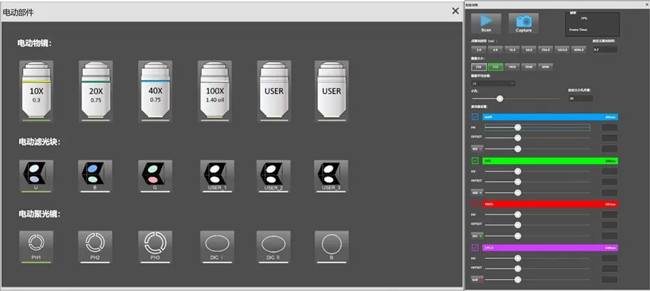 高分辨率的圖像可以通過一鍵生成得到。軟件會(huì)自動(dòng)根據(jù)物鏡數(shù)值孔徑、曝光值和掃描范圍自動(dòng)計(jì)算小孔的尺寸,從而得到最佳信噪比的圖像。