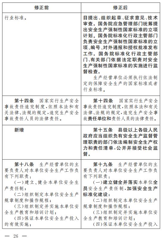 六、增加一條,作為第十五條:“縣級以上各級人民政府應(yīng)當(dāng)組織負(fù)有安全生產(chǎn)監(jiān)督管理職責(zé)的部門依法編制安全生產(chǎn)權(quán)力和責(zé)任清單,公開并接受社會監(jiān)督。”