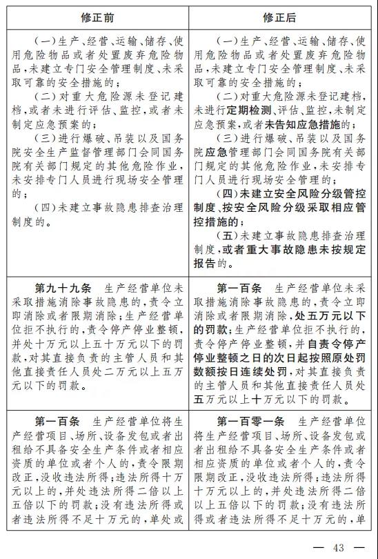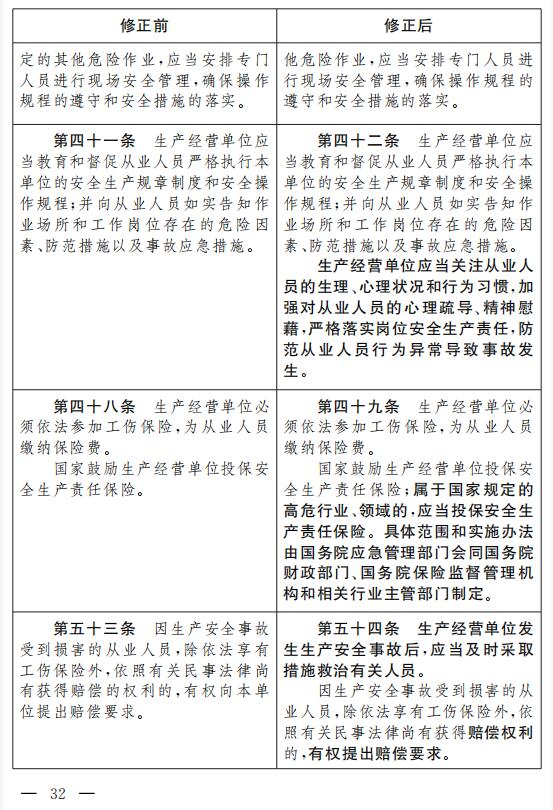 十二、將第四十一條改為第四十二條,增加一款,作為第二款:“生產(chǎn)經(jīng)營單位應(yīng)當(dāng)關(guān)注從業(yè)人員的生理、心理狀況和行為習(xí)慣,加強(qiáng)對從業(yè)人員的心理疏導(dǎo)、精神慰藉,嚴(yán)格落實(shí)崗位安全生產(chǎn)責(zé)任,防范從業(yè)人員行為異常導(dǎo)致事故發(fā)生。”