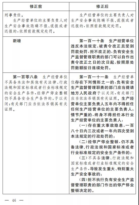 二十九、將第九十九條改為第一百條,修改為:“生產(chǎn)經(jīng)營單位未采取措施消除事故隱患的,責(zé)令立即消除或者限期消除, 處五萬元以下的罰款;生產(chǎn)經(jīng)營單位拒不執(zhí)行的,責(zé)令停產(chǎn)停業(yè)整頓,并自責(zé)令停產(chǎn)停業(yè)整頓之日的次日起按照原處罰數(shù)額按日連續(xù)處罰,對其直接負(fù)責(zé)的主管人員和其他直接責(zé)任人員處五萬元以上十萬元以下的罰款。”