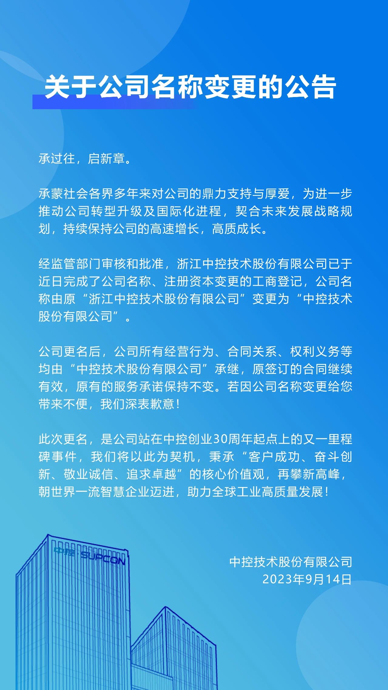 正式更名!中控技術(shù)股份有限公司