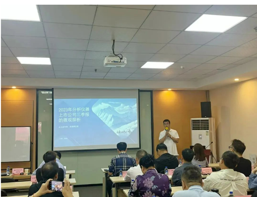 隨后,代理商分會(huì)副理事長林欣田作了題為“2023年分析儀器上市公司三季報(bào)的微觀探析”的分享。他從銷售額、管理與經(jīng)營和供應(yīng)鏈三個(gè)方面對(duì)分析儀器產(chǎn)業(yè)鏈相關(guān)的部分上市公司進(jìn)行了深入分析,通過第三季度財(cái)報(bào)數(shù)據(jù)來探究中國及國際分析儀器行業(yè)市場(chǎng)的發(fā)展情況及未來前景。
