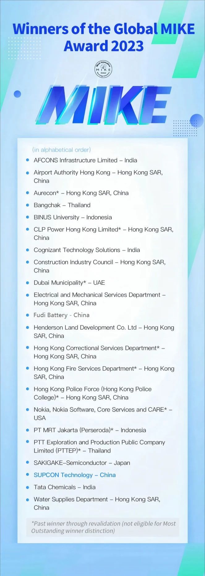 在2023年的全球MIKE大獎(jiǎng)評(píng)選中,共有八個(gè)國(guó)家/地區(qū)參與,包括中國(guó)(內(nèi)地)、中國(guó)香港、印度、印度尼西亞、日本、泰國(guó)、阿聯(lián)酋和美國(guó)。經(jīng)過(guò)嚴(yán)格的評(píng)選,共有22家組織脫穎而出,榮獲2023全球MIKE大獎(jiǎng)。在獲獎(jiǎng)的22家組織中,僅有2家來(lái)自中國(guó)內(nèi)地,其中中控技術(shù)是其中之一。此外,Google、Amazon、Apple、Microsoft等國(guó)際知名企業(yè)也曾獲得該獎(jiǎng)項(xiàng)。
