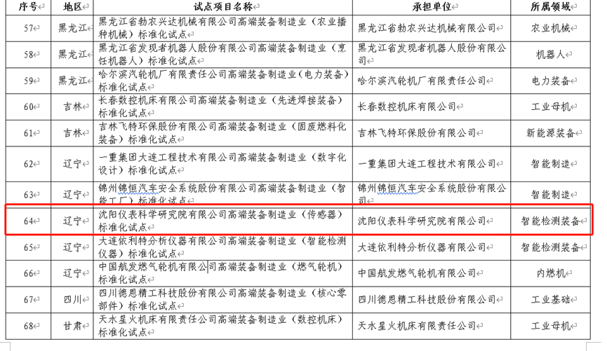 近日,國家標(biāo)準(zhǔn)化管理委員會發(fā)布了擬下達(dá)的第三批國家高端裝備制造業(yè)標(biāo)準(zhǔn)化試點(diǎn)項(xiàng)目的公示名單,沈陽儀表科學(xué)研究院有限公司高端裝備制造業(yè)(傳感器)標(biāo)準(zhǔn)化試點(diǎn)項(xiàng)目榜上有名。