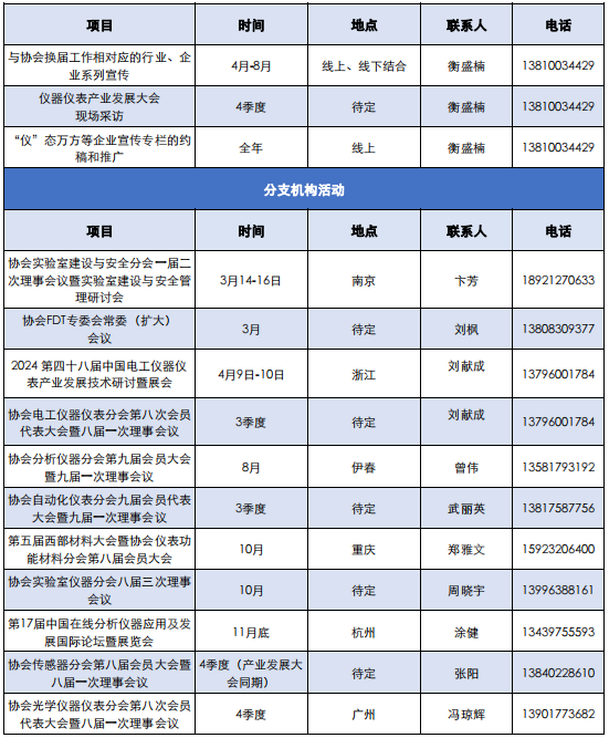 為發揮中國儀器儀表行業協會支撐政府、服務行業的橋梁作用,促進行業間交流與合作,引導產業健康發展,推進各項工作有序開展,更好地為協會會員企業服務,特將中國儀器儀表行業協會2024年主要工作計劃整理如下,供大家了解和參與。