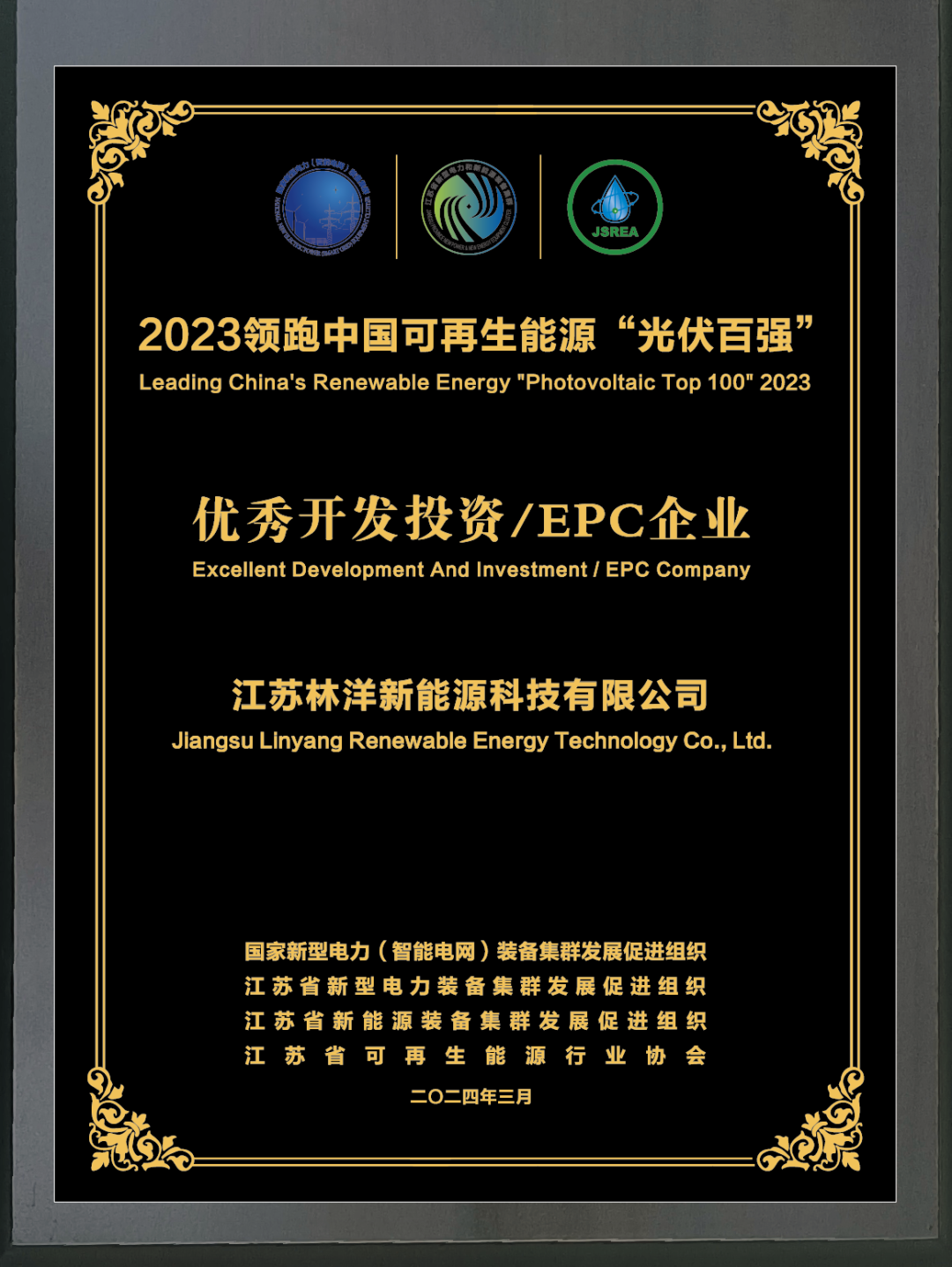 晚間舉辦的2023領(lǐng)跑中國(guó)可再生能源“光伏百?gòu)?qiáng)”頒獎(jiǎng)典禮中,林洋新能源憑借卓越實(shí)力榮獲2023領(lǐng)跑中國(guó)可再生能源“優(yōu)秀光伏電站/EPC企業(yè)”大獎(jiǎng),再次展示了公司在光伏領(lǐng)域的領(lǐng)先行業(yè)地位和社會(huì)影響力。