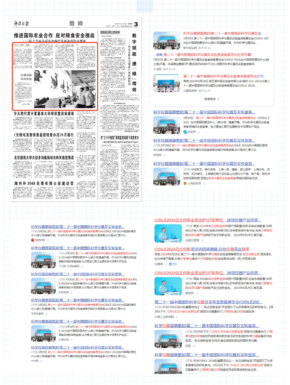 科技日報(bào)、中國工業(yè)網(wǎng)、化工儀器網(wǎng)、儀器學(xué)習(xí)網(wǎng)、分析測試百科網(wǎng)、儀器信息網(wǎng)、儀表堂堂網(wǎng)等多家行業(yè)權(quán)威媒體對大會(huì)進(jìn)行了現(xiàn)場采訪報(bào)道,向全國乃至全球傳遞了CISILE 2024的盛況和亮點(diǎn)。