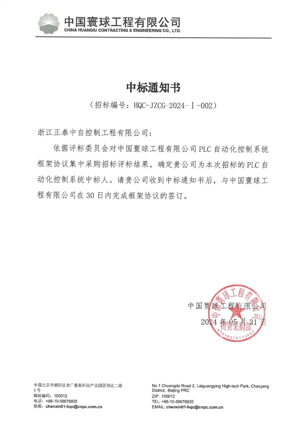繼成功中標中石化2024年度DCS國產化系統框架協議,成為中國石化合格供應商后,近日,浙江正泰中自控制工程有限公司又成功中標中石油下屬中國寰球工程有限公司2024-2025年度PLC自動化控制系統框架協議集中采購項目。