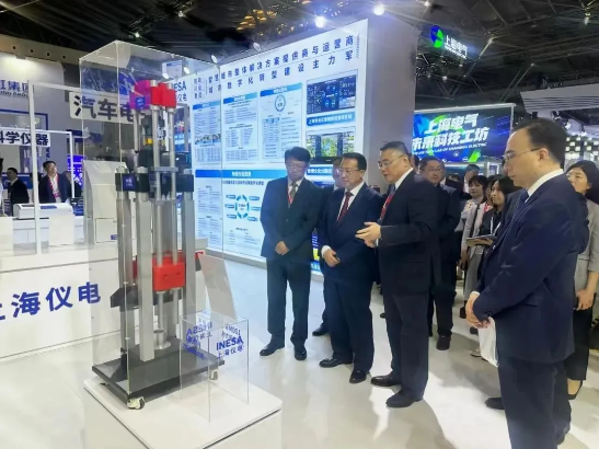 開幕日巡館期間,上海市委副書記、市長(zhǎng)龔正蒞臨儀電展臺(tái),詳細(xì)了解了超大力值傳感器和100MN力標(biāo)準(zhǔn)測(cè)力機(jī)研制及應(yīng)用的相關(guān)情況。