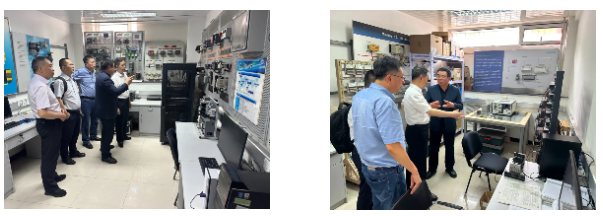 鄭向東副市長一行參觀了傳感與網絡控制實驗室,歐陽勁松所長、王麟琨副所長等向鄭向東副市長詳細介紹了OPC UA、PROFINET、HART、MODBUS、WIA、KNX等工業網絡國際授權認證測試實驗室、培訓中心,以及綜合實驗室、實驗系統的技術能力水平和取得的創新成果。