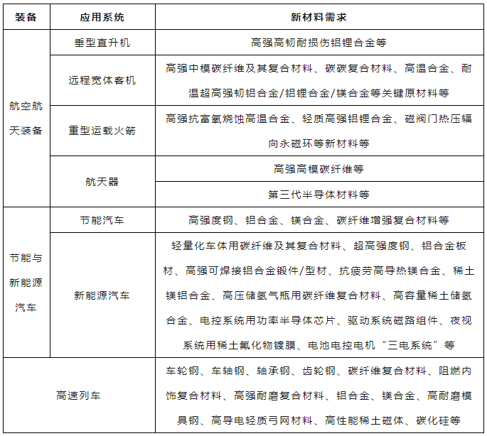 表1 運(yùn)載工具領(lǐng)域新材料需求