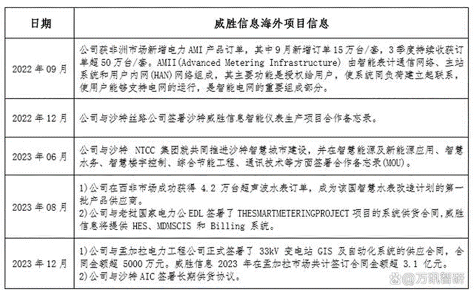 2022-2023年,威勝信息獲得的海外項目信息主要如下。