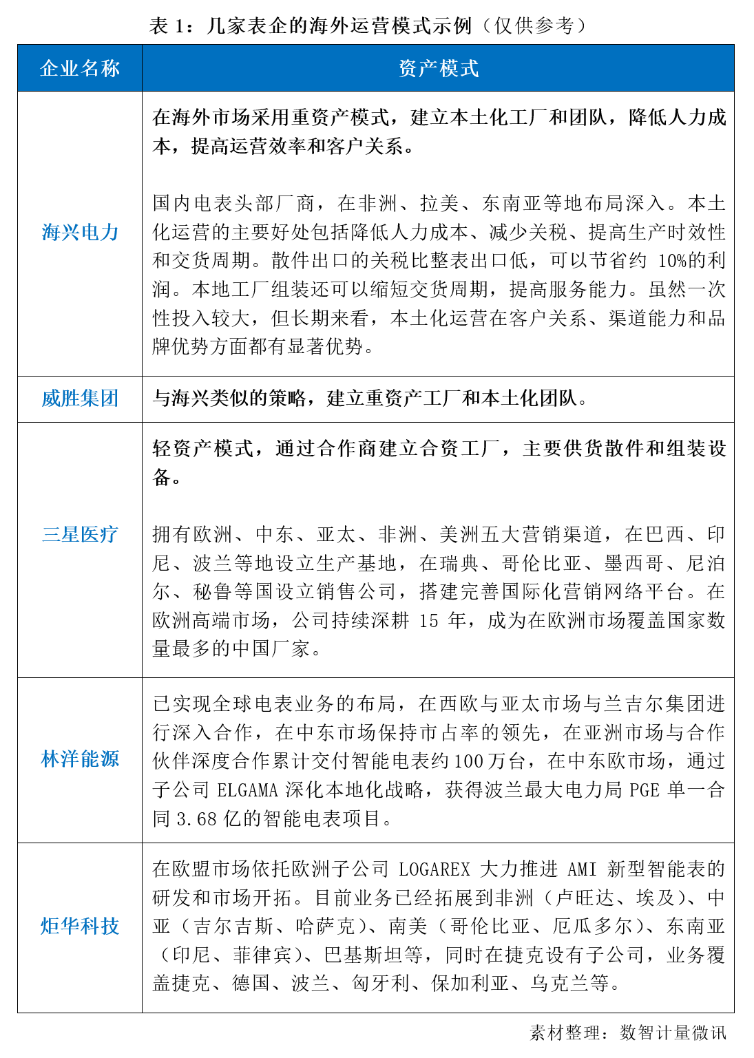 在海外市場頗有建樹的幾家龍頭表企,有的采用重資產(chǎn)模式,建立本土化工廠和團隊;有的采用輕資產(chǎn)模式,與合作伙伴合資;有的收購并購,建有辦事處或子公司。走得最遠的在出海3.0階段。