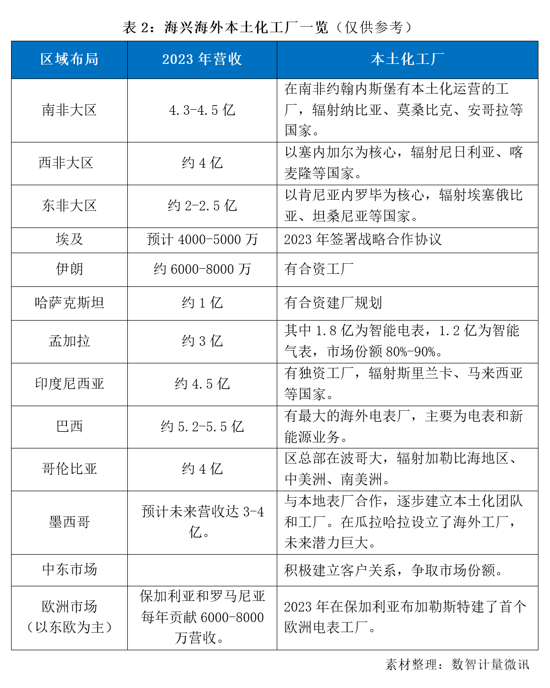 (備注糾正:上表中的海興在保加利亞沒有建廠,在羅馬尼亞建廠)