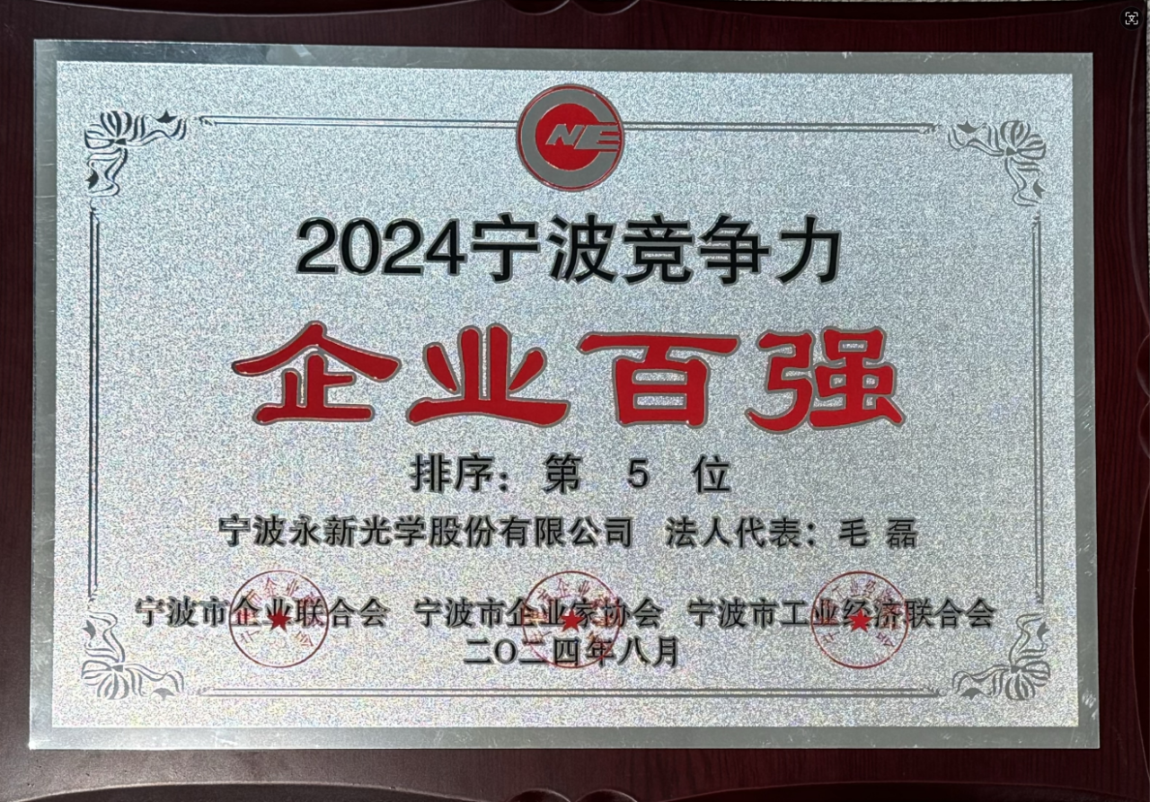 8月30日,寧波市企業(yè)聯(lián)合會、寧波市企業(yè)家協(xié)會、寧波市工業(yè)經(jīng)濟聯(lián)合會正式發(fā)布2024寧波企業(yè)百強榜。永新光學(xué)憑借在科技、標(biāo)準(zhǔn)創(chuàng)新和企業(yè)高質(zhì)量發(fā)展方面的卓越表現(xiàn),再次榮登“寧波·競爭力”百強榜前十位強(本次第五位),這是公司自該榜單設(shè)立以來第十次獲此殊榮。