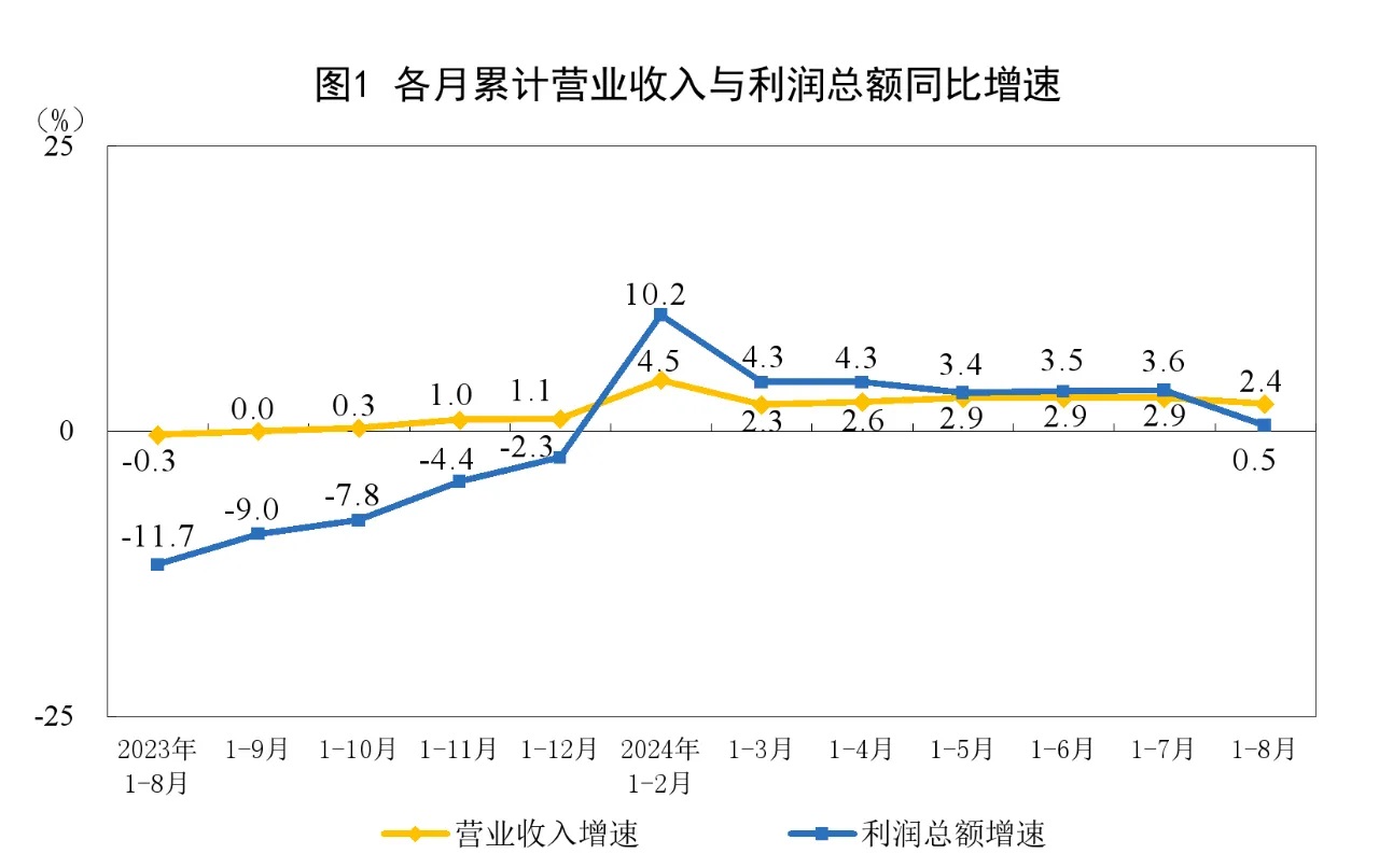 1—8月份,全國(guó)規(guī)模以上工業(yè)企業(yè)實(shí)現(xiàn)利潤(rùn)總額46527.3億元,同比增長(zhǎng)0.5%(按可比口徑計(jì)算,詳見(jiàn)附注二)。