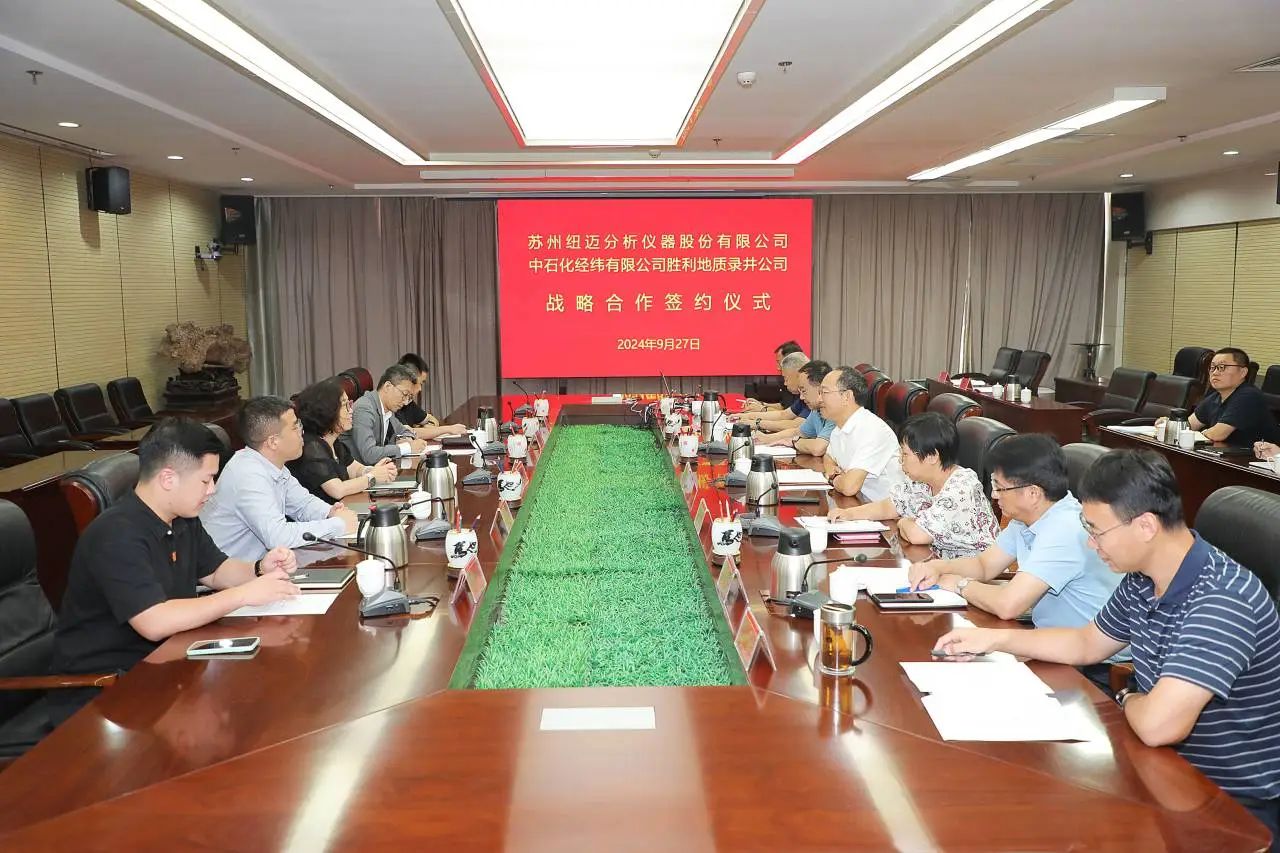9月27日下午,紐邁分析與中石化經緯有限公司勝利地質錄井公司(簡稱勝利地質錄井)正式簽署了戰略合作協議。勝利地質錄井經理趙建勇、紐邁分析總經理李向紅共同出席并見證了這一重要時刻。勝利地質錄井的高級專家兼副經理張多文與紐邁分析的副總經理張英力分別代表各自公司簽署了協議,標志著雙方正式建立了戰略合作伙伴關系。
