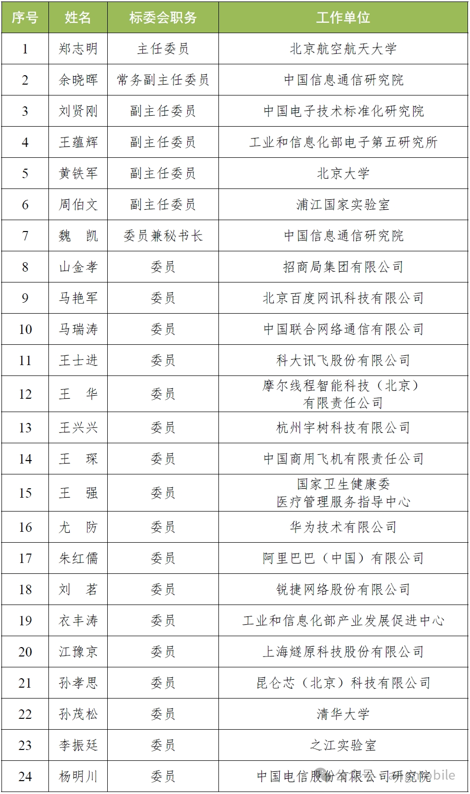 【附】第一屆工信部AI標(biāo)準(zhǔn)化技術(shù)委員會(huì)委員