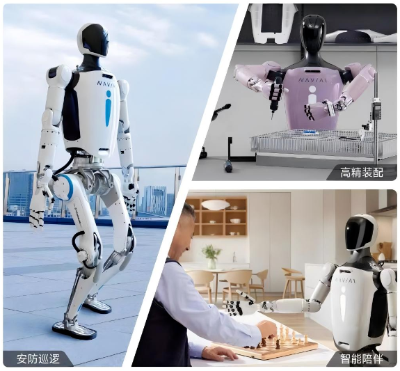 “領航者1號”和“領航者2號NAVIAI”兩款人形機器人不僅在硬件端實現(xiàn)了多項創(chuàng)新,還融合了機理控制、模仿學習與強化學習方法,依托AI大模型等多重技術,實現(xiàn)了多方面的技術突破。目前,領航者2號NAVIAI及即將發(fā)布的第三代人形機器人已完成DeepSeek-R1測試,其深度推理和復雜邏輯分析能力為人形機器人提供了強大的技術支撐。未來,第三代人形機器人還將進一步接入DeepSeek的多模態(tài)模型Janus Pro,助力機器人實現(xiàn)自然的環(huán)境感知和人機交互,本年度將在某大型石化企業(yè)實驗室的高風險作業(yè)場景中實現(xiàn)AI驅動的具身智能仿生機器人的落地應用。DeepSeek的引入,有望對人形機器人在以下幾個方面實現(xiàn)賦能: