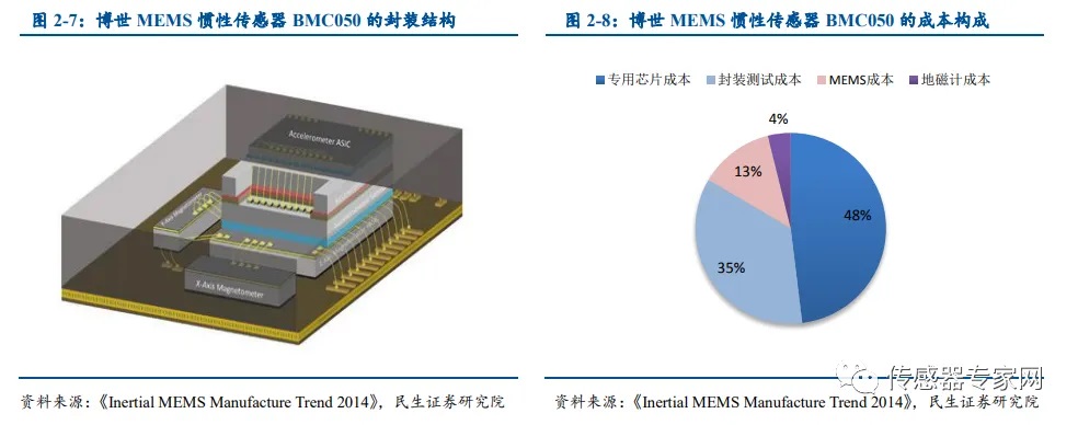▲博世MEMS慣性傳感器BMC050成本構成