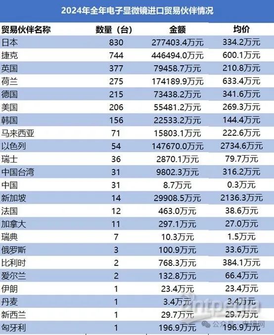 2024 年中國電子顯微鏡進出口盤點:繼續增長超1