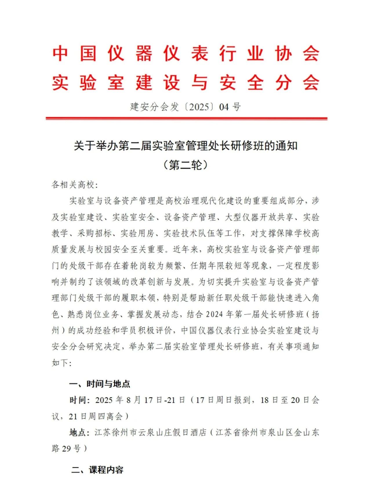 關(guān)于舉辦第二屆實(shí)驗(yàn)室管理處長(zhǎng)研修班的通知(第二輪)