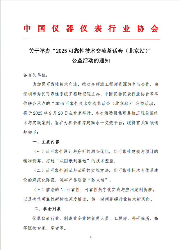 ” 公益活動(dòng)的通知關(guān)于舉辦“2025 可靠性技術(shù)交流茶話會(huì)(北京站)”