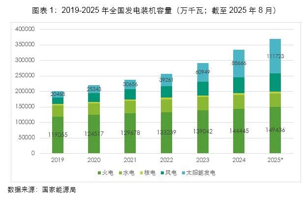 “十四五”火電裝機規(guī)模穩(wěn)步提升。2019年全國發(fā)電裝機容量20.1億千瓦,到2025年8月已超過36億千瓦,其中增量最大的是太陽能發(fā)電接近10億千瓦。而火電裝機也保持了穩(wěn)步提升,從2019年的11.9億千瓦,增加到2025年8月的14.9億千瓦。