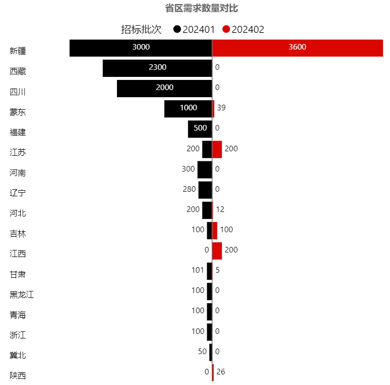 主要的需求量來自四川、湖北、安徽、福建等省份。
