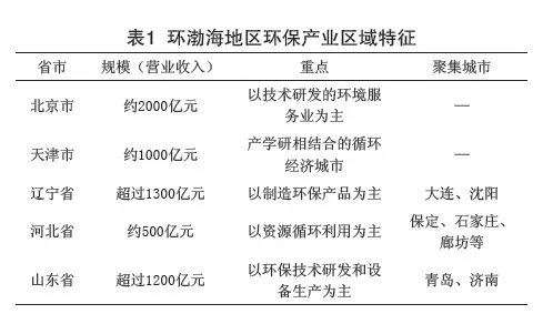 環(huán)渤海地區(qū)環(huán)保產(chǎn)業(yè)總產(chǎn)值約占全國(guó)環(huán)保產(chǎn)業(yè)總產(chǎn)值的20%。環(huán)渤海地區(qū)環(huán)保產(chǎn)業(yè)主要聚集在北京、天津、遼寧、河北和山東等省市。其中環(huán)境保護(hù)產(chǎn)品銷售收入分列全國(guó)的第六、第十九、第五、第十二和第四;環(huán)境保護(hù)服務(wù)營(yíng)業(yè)收入分別列全國(guó)的第一、第十一、第十二、二十五和第七;資源循環(huán)利用產(chǎn)品銷售收入列全國(guó)第十五、第十八、第十七、第十四和第七;環(huán)境友好產(chǎn)品分別列全國(guó)的第五、第八、第七、十六和第十。由此可以看出,環(huán)渤海地區(qū)在技術(shù)開發(fā)轉(zhuǎn)化、設(shè)備生產(chǎn)和環(huán)境保護(hù)服務(wù)等方面優(yōu)勢(shì)明顯。環(huán)渤海地區(qū)環(huán)保產(chǎn)業(yè)區(qū)域特征見表1。