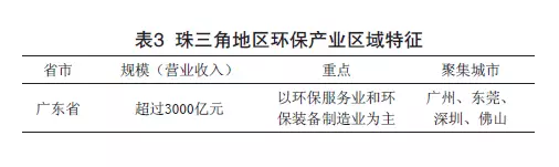 廣東是環(huán)保產(chǎn)業(yè)大省,環(huán)保產(chǎn)業(yè)年收入總額在全國(guó)排名第三,廣東省環(huán)保產(chǎn)業(yè)生產(chǎn)總值占全國(guó)環(huán)保產(chǎn)業(yè)生產(chǎn)總值的9.7%。其中環(huán)境保護(hù)服務(wù)營(yíng)業(yè)收入列全國(guó)第三;資源循環(huán)利用產(chǎn)品銷售收入列全國(guó)第三;環(huán)境友好產(chǎn)品銷售收入列全國(guó)第三;廣東省環(huán)保產(chǎn)品生產(chǎn)相對(duì)落后,環(huán)境保護(hù)產(chǎn)品銷售收入列全國(guó)第十四。由此可見,廣東環(huán)保產(chǎn)業(yè)全國(guó)領(lǐng)先,僅次于江蘇、浙江,環(huán)境保護(hù)服務(wù)、資源綜合利用產(chǎn)品和環(huán)境友好產(chǎn)品位于全國(guó)前列,環(huán)保產(chǎn)品生產(chǎn)相對(duì)落后。珠三角地區(qū)環(huán)保產(chǎn)業(yè)區(qū)域特征見表3。