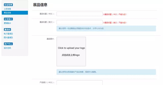 可自主編輯公司信息和展品信息,中英結(jié)合,圖文并茂,作為后期線上推廣內(nèi)容。