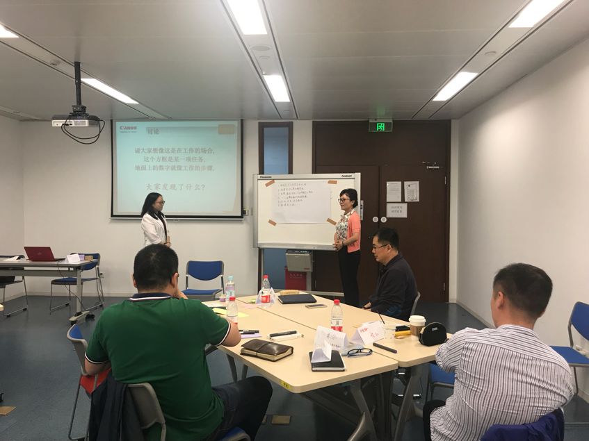 第二次課程在輕松熱烈的氛圍中開始,佳能高級(jí)講師首先簡(jiǎn)單回顧了第一次課程的要點(diǎn),之后采取輕松愉快的“星座”分組模式,帶領(lǐng)學(xué)員逐個(gè)分享與實(shí)際工作相結(jié)合的“全體像分析”及“APS流程細(xì)化”作業(yè);在學(xué)員分享過程中,積極帶動(dòng)各小組成員共同分析和探討,分析所授“手法”掌握的程度及問題,總結(jié)其中優(yōu)秀的做法,探討問題的其他解決方案;通過分享及參與的方法再次引導(dǎo)大家理解和鞏固目標(biāo)管理的三要素、3M原則及全體像的應(yīng)用方法等手法。
