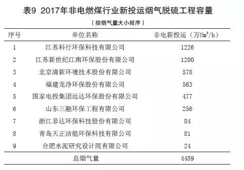 (2)2017年非電燃煤行業(yè)新投運(yùn)脫硫工程容量
