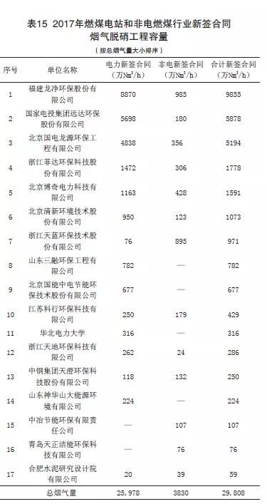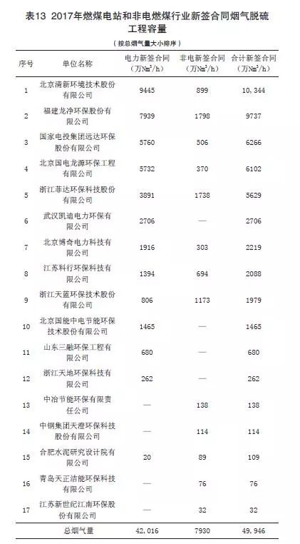 (1)2017年度燃煤煙氣全行業(yè)新簽脫硫工程合同容量