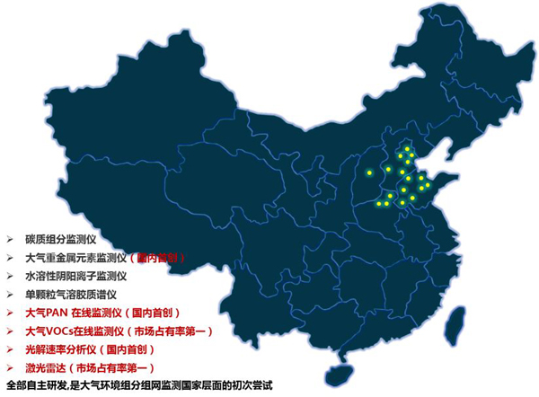 聚光科技承擔首個國家級大氣顆粒物組分-光化學監測網的建設和運維服務,涉及京津冀2+26城市,監測數據服務于京津冀地區顆粒物來源解析和污染綜合防治。
