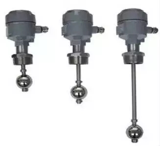 浮球液位開關結構主要基于浮力和靜磁場原理設計生產的。帶有磁體的浮球(簡稱浮球)在被測介質中的位置受浮力作用影響:液位的變化導致磁性浮子位置的變化。浮球中的磁體和傳感器(磁簧開關)作用,產生開關信號。