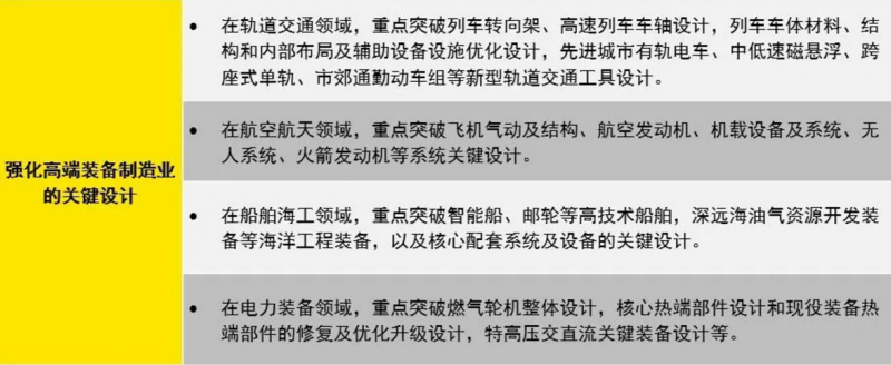 根據2019年10月工信部等十三個部門聯合印發的《關于印發制造業設計能力提升專項行為計劃(2019-2022)的通知》,“強化高端裝備制造業的關鍵設計”被作為重點設計突破工程的首要任務(表二)。