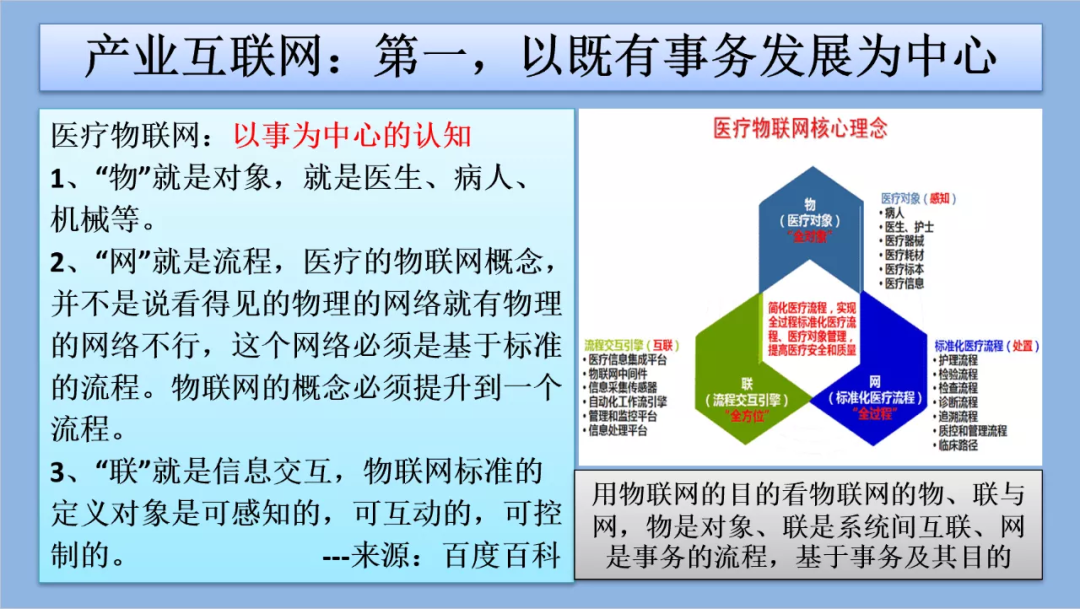 比如醫療互聯網,是把物聯網重新定義,傳統產業往前發展,這個定義很容易解釋。其他傳統產業用這個模式一套也是同樣,然后變成產業互聯網。