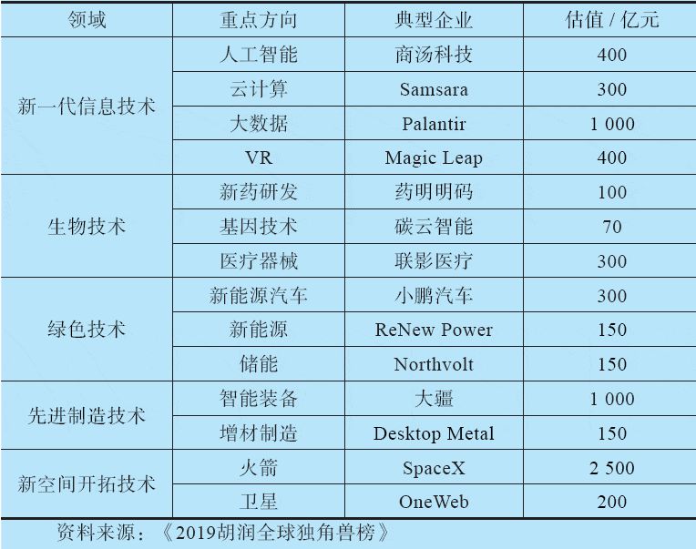 當前新一輪科技革命和產業變革正處在實現重大突破的歷史關口,全球科技創新進入空前密集活躍的時期,前沿技術呈現集中突破態勢,多個技術群相互支撐,全面涌現的鏈式發展局面正在形成。眾多顛覆性創新呈現幾何級滲透擴散,引領戰略性新興產業眾多領域實現加速發展,并以革命性方式對傳統產業產生全面沖擊。中國科學院白春禮院士將當前的主要技術進展歸納為信息科技、生命健康、能源、新材料、先進制造、深空深海深地探測六個方面。而從具體產業發展的角度,全球獨角獸企業可以視為一個觀察新產業、新技術突破的窗口。