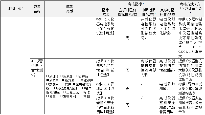 儀器專項整機及核心部件的可靠性典型指標包含技術就緒度評估、質量與可靠性工作方案、核心部件可靠性分析與測試、儀器軟系統質量、成套儀器安全性測試、成套儀器環境適應性試驗、成套儀器可靠性測試、成套儀器異地測試、成套儀器可靠性指標考核等,具體解析如下: