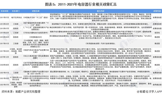 近年,我國(guó)出臺(tái)的政策從加快行業(yè)自身的建設(shè)到推動(dòng)下游市場(chǎng)的蓬勃房展等各方面推動(dòng)我國(guó)電容器行業(yè)的發(fā)展。從下游發(fā)展來(lái)看,對(duì)于智能終端、5G、工業(yè)互聯(lián)網(wǎng)、數(shù)據(jù)中心、光伏、新能源汽車等重點(diǎn)市場(chǎng)出臺(tái)許多相關(guān)扶持政策,下游市場(chǎng)的發(fā)展也推動(dòng)了對(duì)于電容器產(chǎn)能及技術(shù)提升的需求。2020年《基礎(chǔ)電子元器件產(chǎn)業(yè)發(fā)展行動(dòng)計(jì)劃(2021-2023年)》推動(dòng)基礎(chǔ)電子元器件產(chǎn)業(yè)實(shí)現(xiàn)突破,并增強(qiáng)關(guān)鍵材料、設(shè)備儀器等供應(yīng)鏈保障能力。