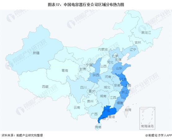 電容器行業(yè)的行業(yè)集中度較高,主要以日系廠商為主導(dǎo)。從電容器企業(yè)的區(qū)域集中度來(lái)看,截至2021年8月3日,廣東省、江蘇省和浙江省的電容器企業(yè)數(shù)量合計(jì)占全國(guó)總數(shù)的半數(shù)左右,說(shuō)明我國(guó)電容器企業(yè)的分布是較為集中的,行業(yè)發(fā)展較為密集。