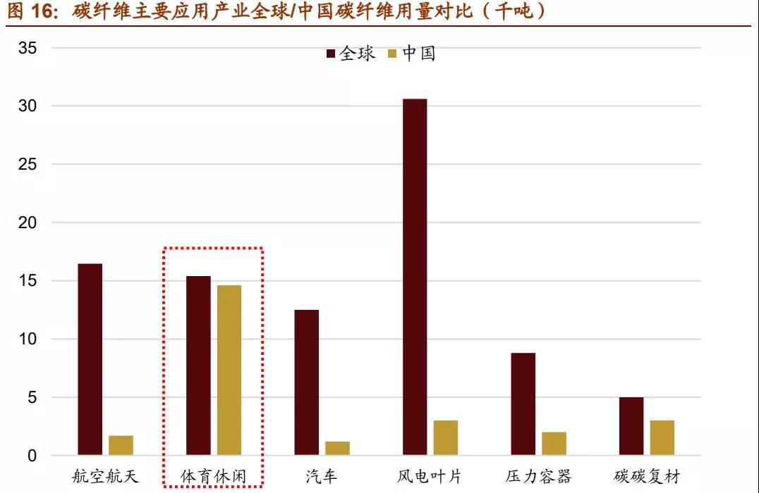 此外,碳纖維在其他應用領域還有很大潛力可以挖掘。以主要競爭對手鋁合金為例,碳 纖維和鋁合金同屬替換鋼材的輕量化材料,碳纖維在強度、化學穩(wěn)定性等性能上都占優(yōu), 并且在飛機部件、高性能汽車車架、自行車架等產(chǎn)品相比鋁合金都有更好的表現(xiàn)。但受 累于高昂的價格,目前碳纖維應用大多局限于高附加值產(chǎn)品。2016 年世界鋁材年需求 量約是碳纖維的 500-600 倍,行業(yè)產(chǎn)值約為 50 倍,且受益于汽車工業(yè)的發(fā)展鋁材需求 近年也在快速增長。隨著技術(shù)的進步壓低碳纖維的成本,未來碳纖維還有廣闊的市場空間。