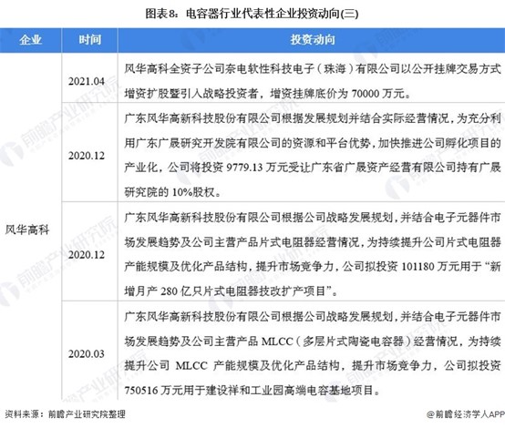 電容器行業代表性企業最新投資動向