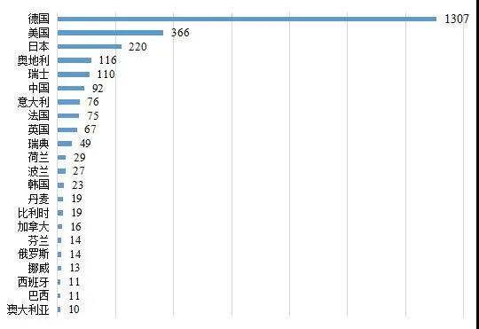 圖3 各國隱形冠軍數量