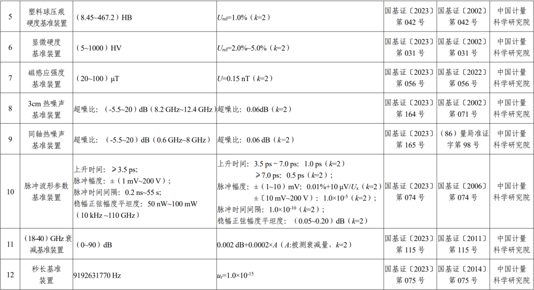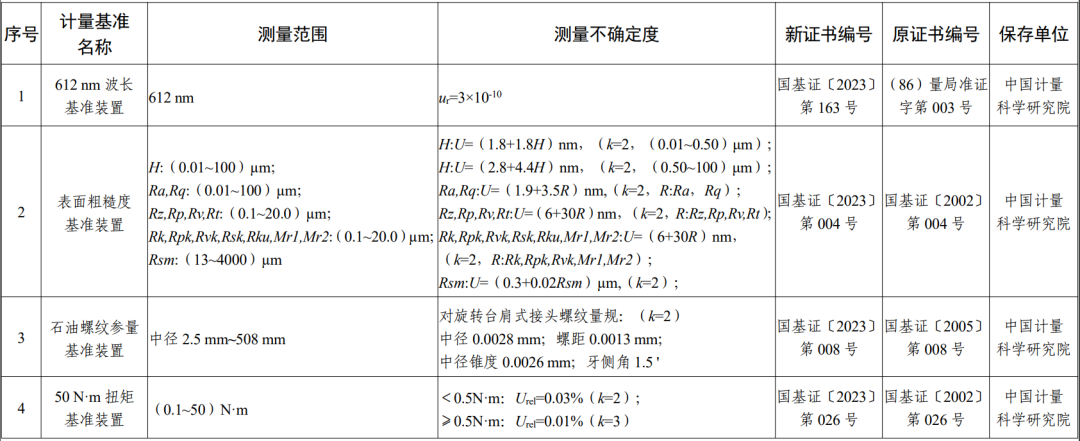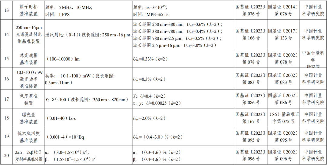 23項技術能力提升的國家計量基準名單