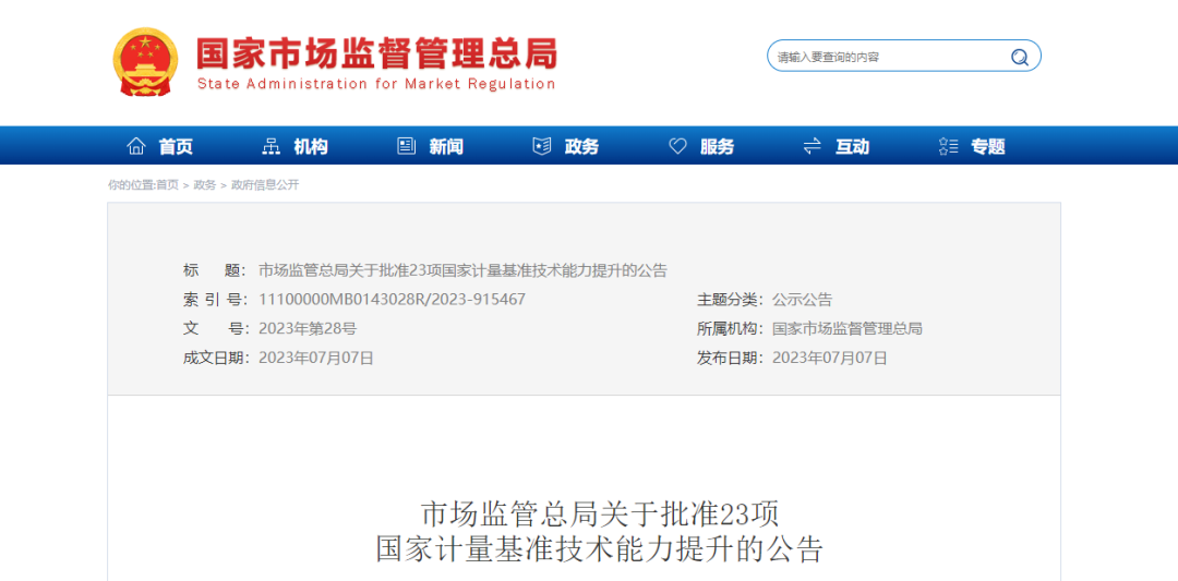 7月7日,國家市場監督管理總局發布關于批準23項國家計量基準技術能力提升的公告,批準“612nm波長基準裝置”“表面粗糙度基準裝置”等23項國家計量基準技術能力提升,頒發新的國家計量基準證書,撤銷相應的原國家計量基準證書。具體如下。